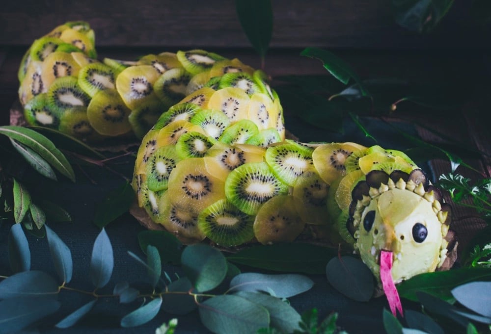 Deze spectaculaire slang is makkelijker gemaakt dan je wellicht zou denken! Door twee tulbandvormen te gebruiken, de cakes doormidden te snijden en om en om tegen elkaar te leggen krijg je meteen het effect van een kronkelende slang. De cakes worden bedekt met een fris-romige citroen-avocadocrème. Hier breng je vervolgens plakjes kiwi op aan waardoor je een onwaarschijnlijk én verrukkelijk spektakelstuk creëert en één die volledig dier- en daarmee slangvriendelijk is!